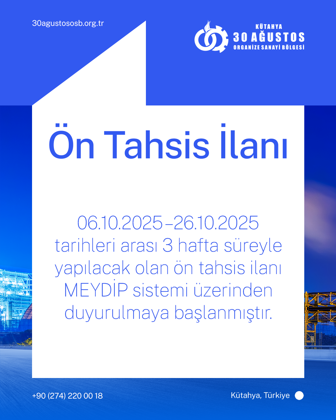 Kütahya 30 Ağustos OSB Hakkında